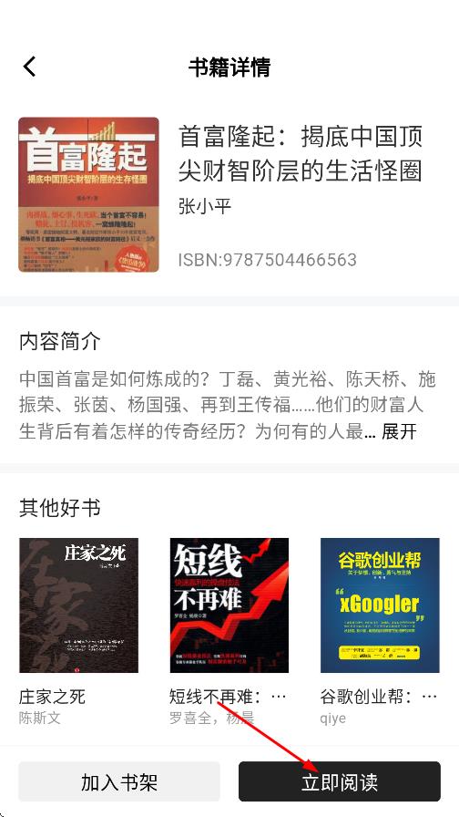 4、在书籍详情页面,点击立即阅读,开始阅读书籍。