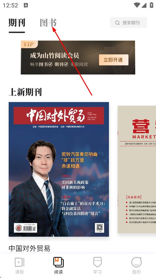 2、在阅读页面,点击图书,切换到图书板块。
