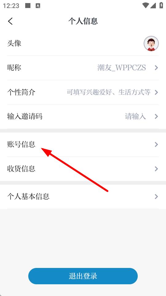 3、在个人信息界面里,点击账号信息选项,进入账号信息页面。
