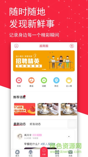 每个人可以在这里的社区之中发布任意动态,有问题的话可以在这里向其他越南华人求助;
