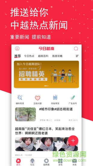 今日越南app是专为在越南生活的华人们打造的新闻资讯软件,在这里你可以了解到各个不同方面的新闻内容,为你提供各种贴心的服务,有需要的用户赶快来下载体验吧!