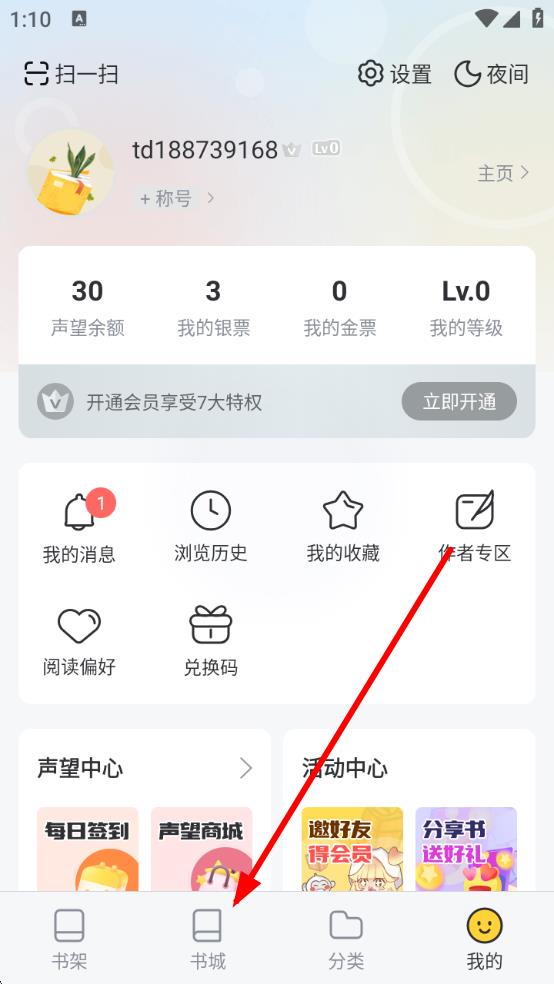 1、打开塔读小说APP,点击下方导航栏中的书城进入书城界面。