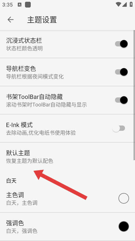 3、在主题设置页面,点击默认主题选项,触发恢复默认主题的确认弹窗。