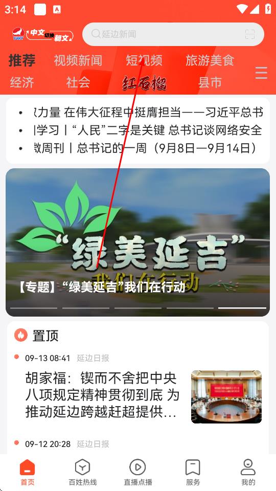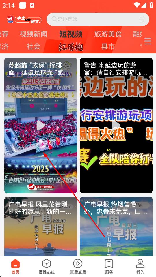1、打开延边广电App,进入首页点击短视频选项。