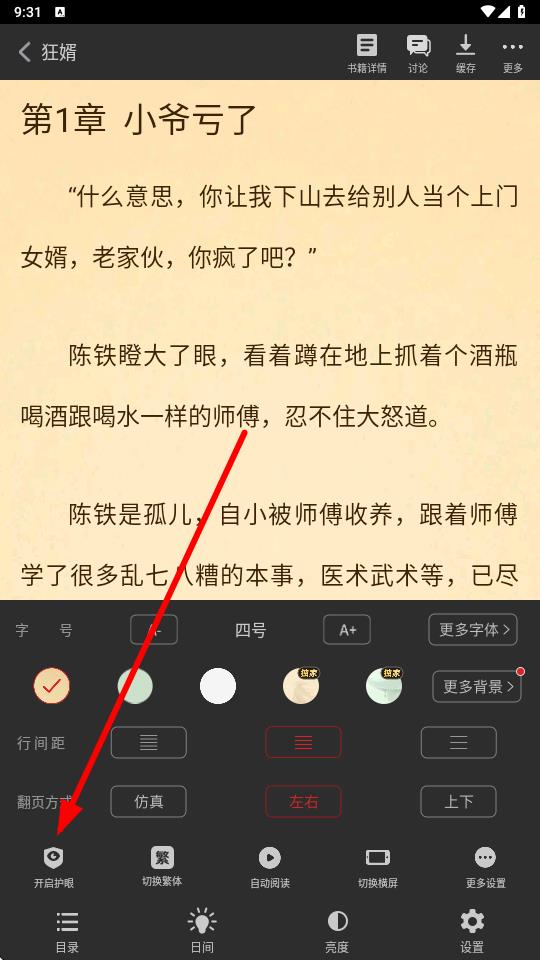 3、成功开启护眼模式,阅读界面显示效果改变以保护眼睛。