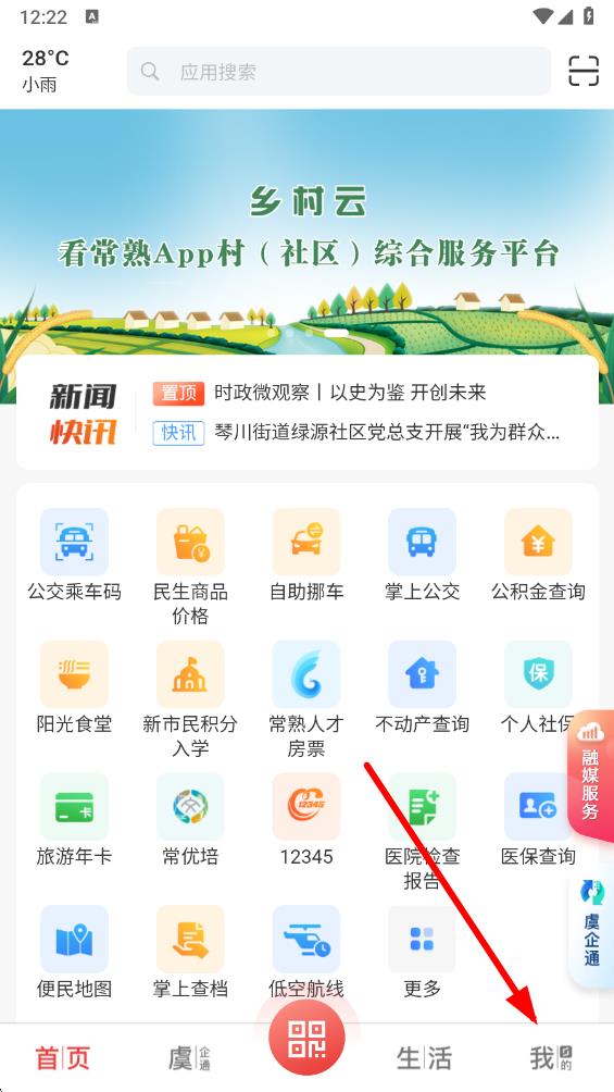 1、打开看常熟新闻app,点击底部导航栏中的我的选项,进入个人相关界面。