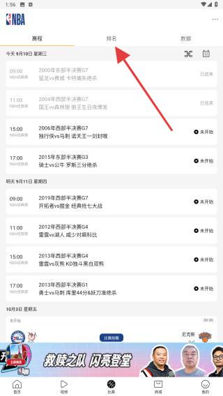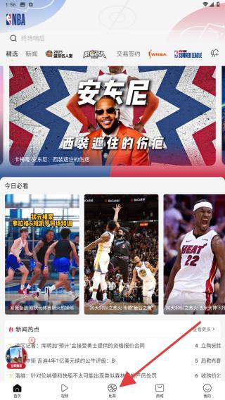 1、打开NBAAPP进入到首页内,点击比赛的功能图标。