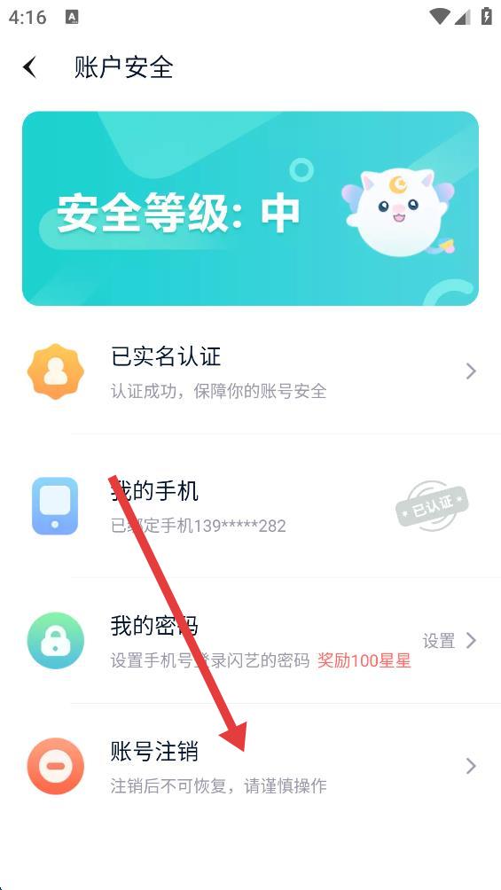 4、在账户安全页面,点击账号注销选项。