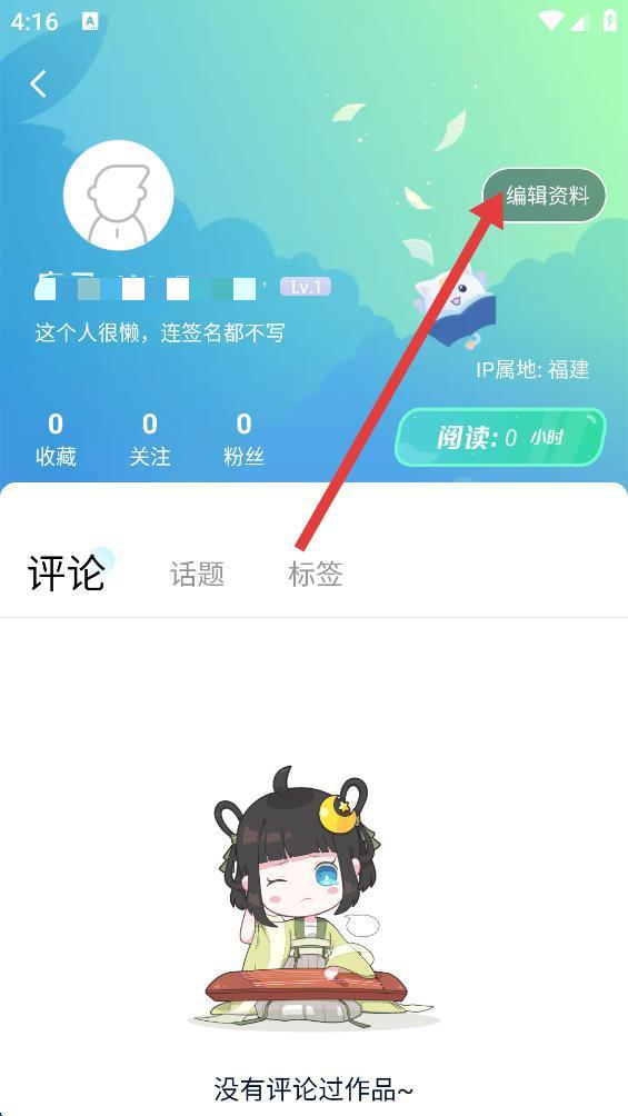 2、在个人主页界面,点击编辑资料,进入个人资料页面。