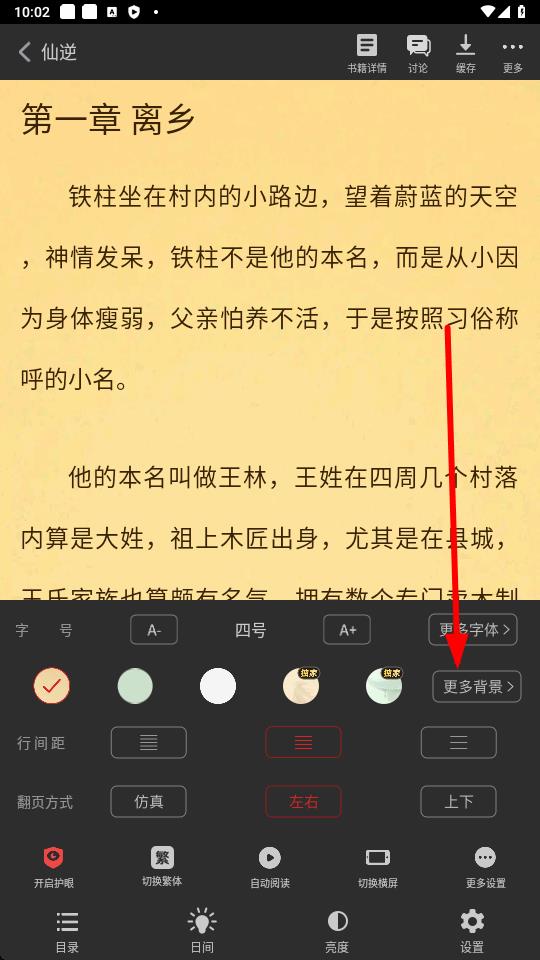 2、在设置界面中找到并点击更多背景选项,进入背景选择页面。