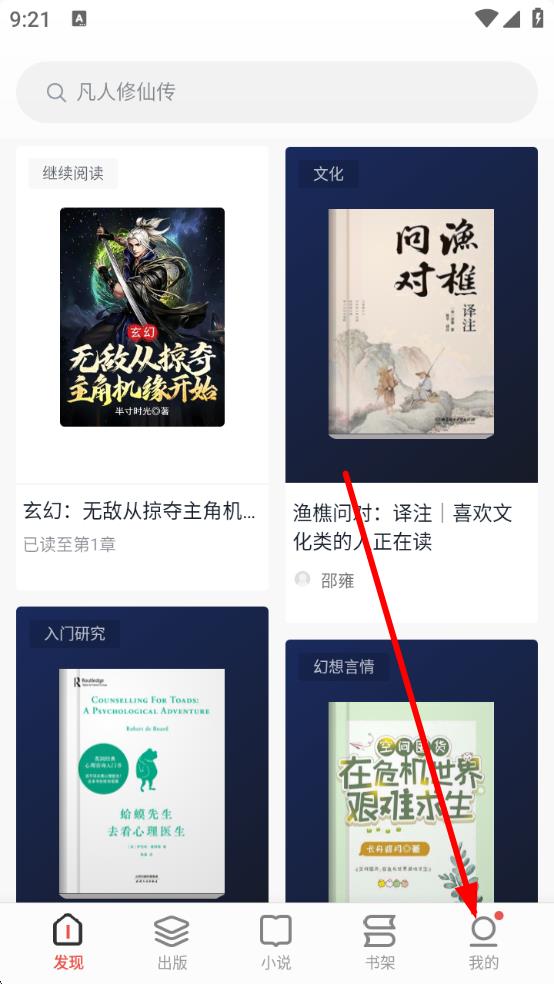1、打开掌阅APP,点击底部导航栏中的我的进入个人相关界面。