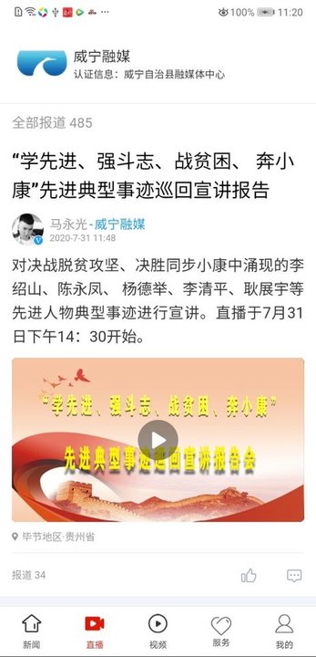 4.发布威宁权威信息,提供威宁融媒体中心各栏目的节目内容,推广威宁各类宣传视频。