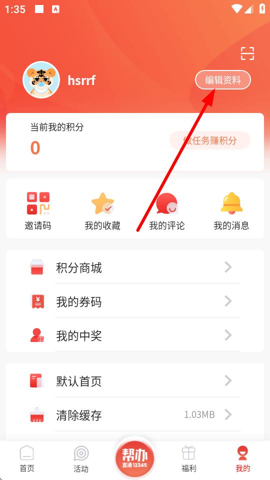 2、在个人页面中,点击头像右侧的编辑资料选项,进入账号设置页面。