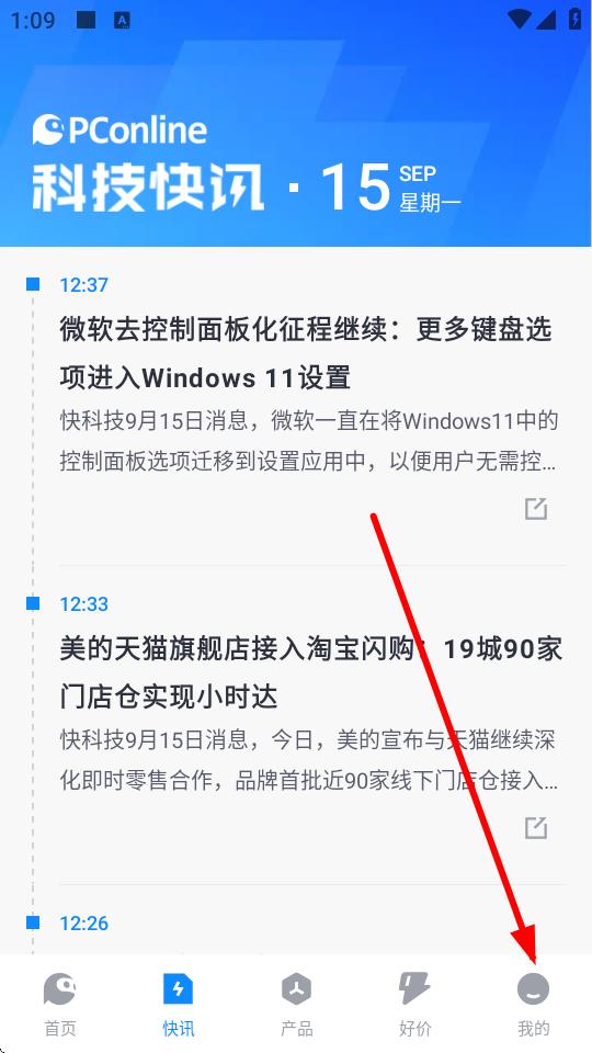 1、打开太平洋科技APP,点击底部导航栏最右侧的我的选项进入个人页面。