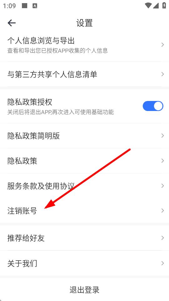 3、在设置界面里,找到并点击注销账号选项,进入账号注销流程页面。