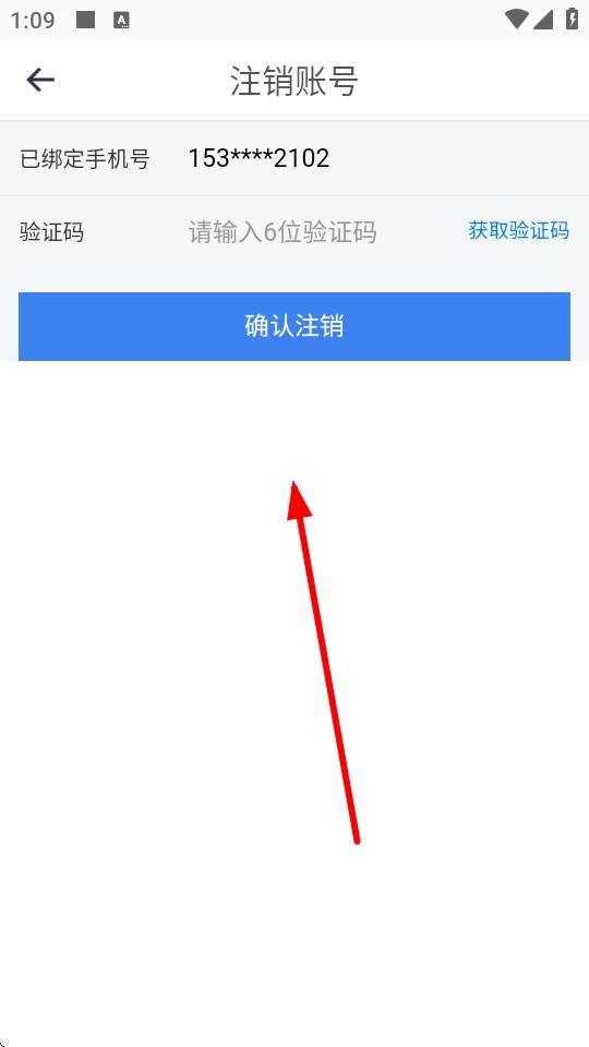 4、在注销账号页面,输入已绑定手机号收到的6位验证码,点击确认注销完成操作。