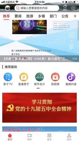 天地泰宁app是当地最具权威的新闻发布平台,帮助市民更有效率地处理日常事务,增强了居民的参与感,提升了对政府工作的满意度,优化了居住环境,未来期待该平台能够持续进步,为更多用户提供更好的服务。里面的内容丰富精彩,更新速度非常的快,用户可以随时在里面观看自己喜欢的新闻内容,还有新闻直播和电视节目可以观看,更有当地的政务和生活服务功能,非常的方便,喜欢的朋友赶紧下载体验吧。