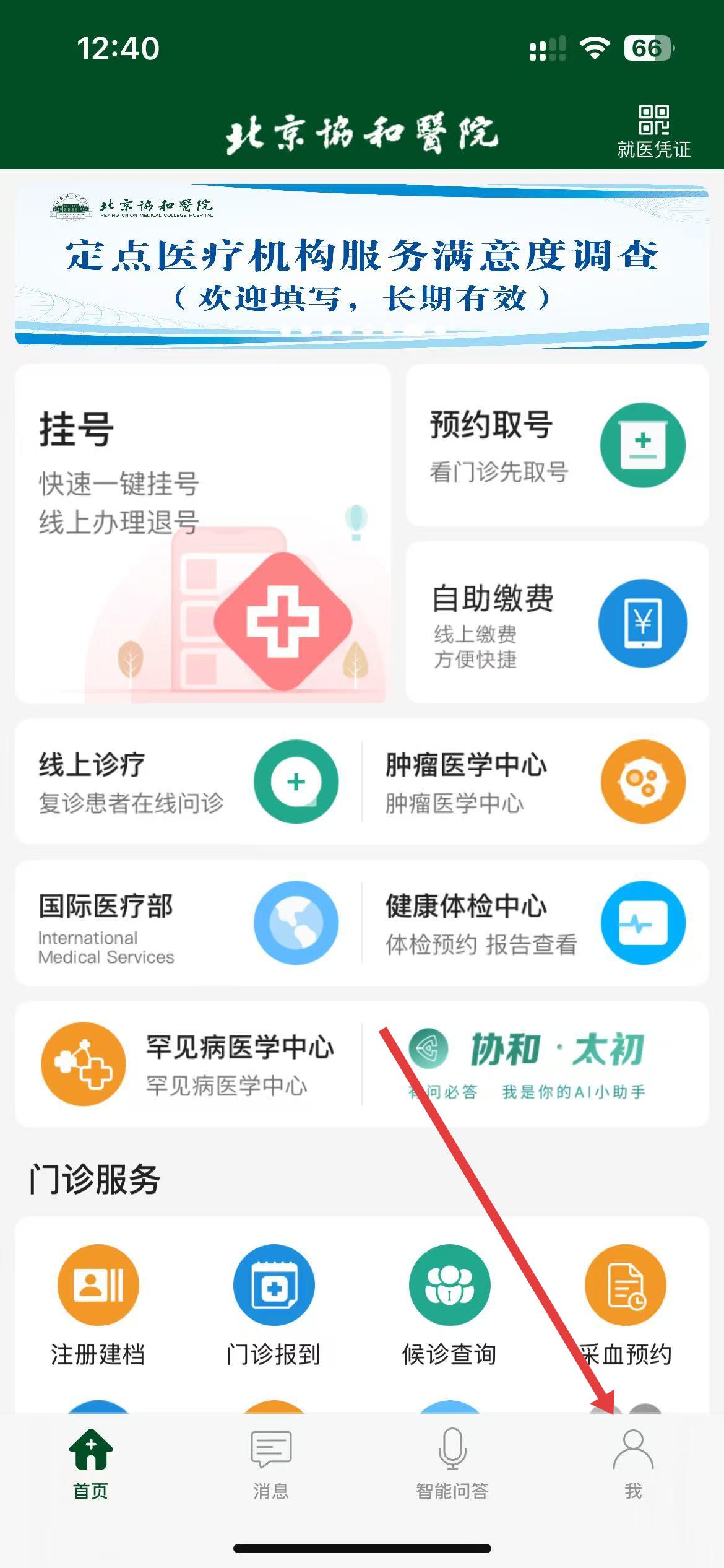 1、打开北京协和医院app,点击底部导航栏我,进入个人中心界面。