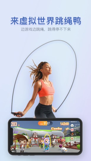 炫酷的3D虚拟世界,你化身为可爱的卡通人物,身临其境的跳绳,各种奖励刺激,让你跳得停不下来!