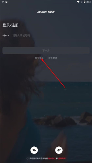 2、在登录页面,点击账号登录,进入账号登录页面。