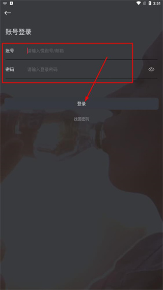 3、在账号登录页面,输入账号和密码,点击登录,完成登录操作。
