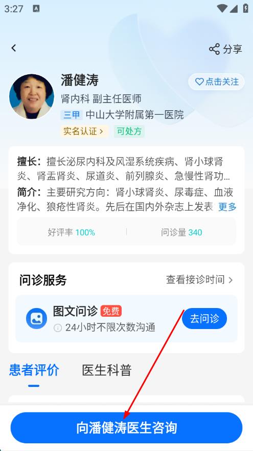 4、或者进入医生详情页面后,点击向医生咨询,即可与医生进行沟通咨询。