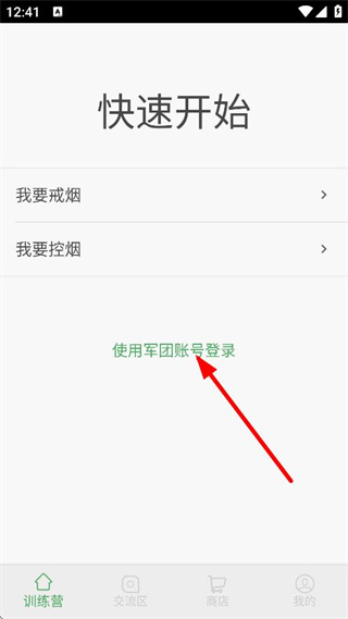 2、在快速开始页面,点击使用军团账号登录,进入注册/登录页面。