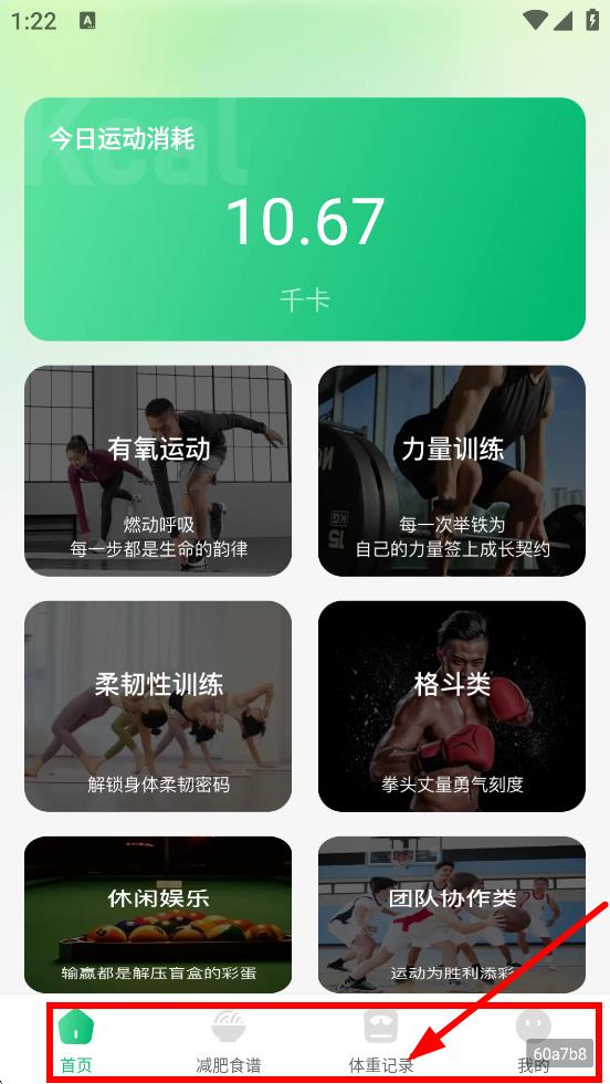 1、在首页,点击底部体重记录,进入体重记录页面。