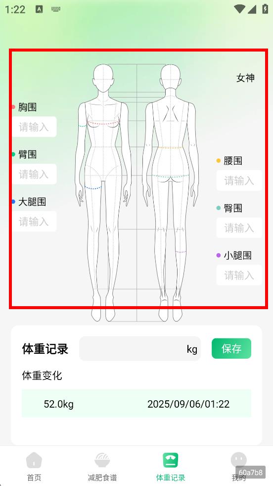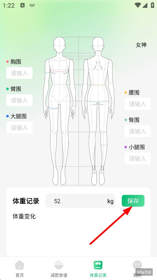 3、在体重记录页面,可输入胸围、臂围等身体围度信息。