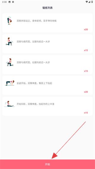 4、在锻炼列表内,熟知后点击下方开始的按钮即可。