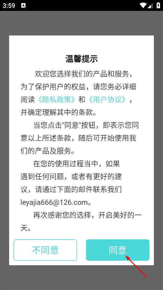 1、打开30天运动减肥,弹出温馨提示,点击同意,进入软件相关界面。