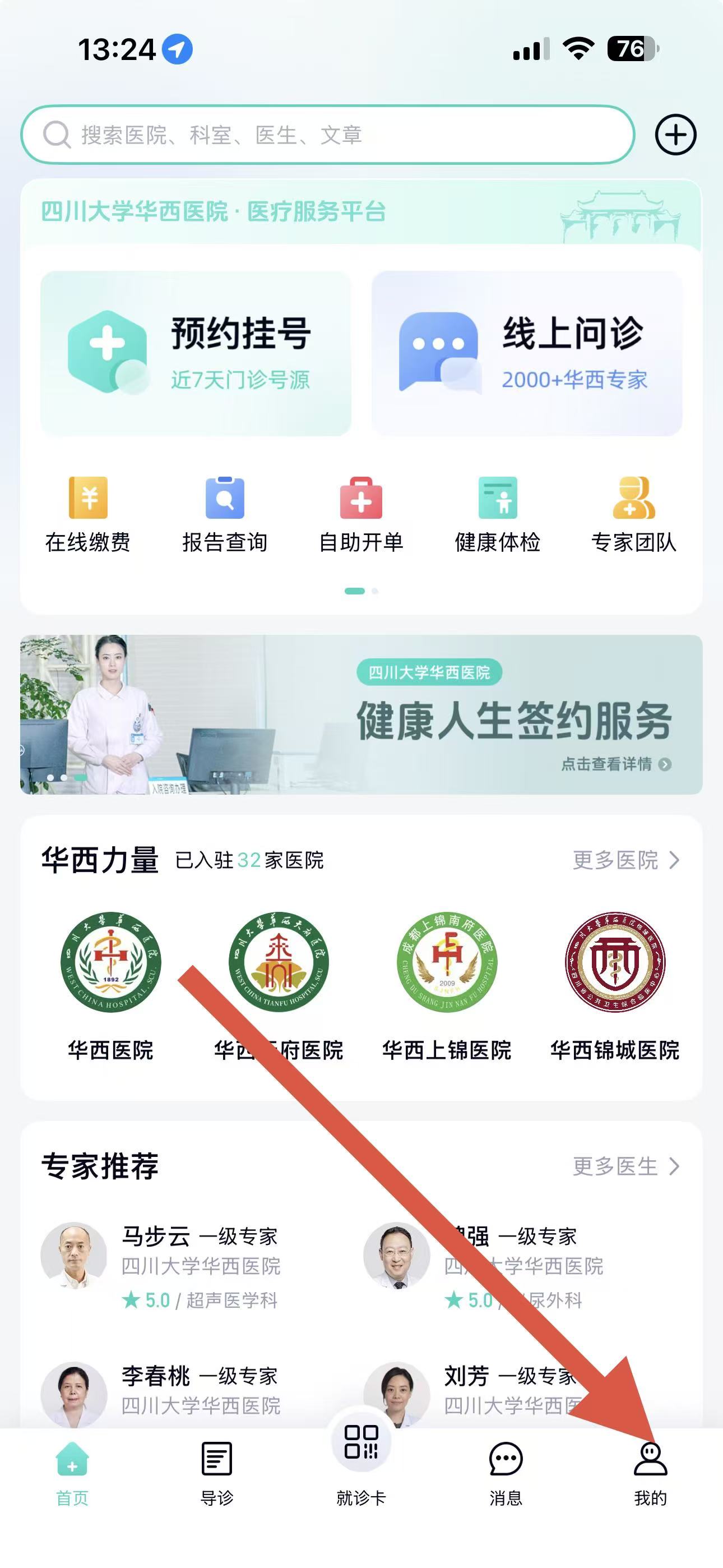 1、打开华医通APP,点击底部导航栏中的我的,进入个人页面。
