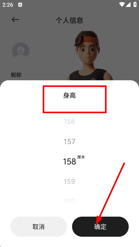 4、在弹出的身高设置界面中,选择合适的身高数值,然后点击确定按钮,即可完成身高设置。