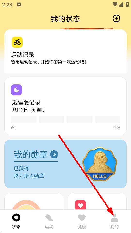 1、打开小米穿戴应用,点击底部导航栏中的我的选项。