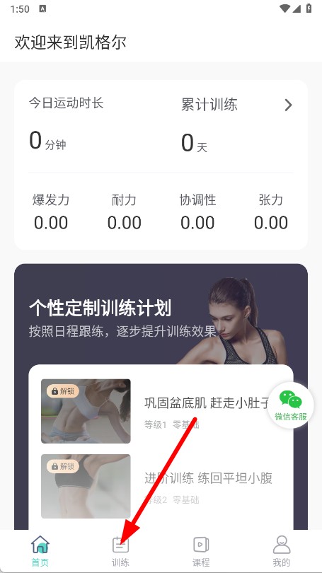 1、打开凯格尔训练,点击底部训练选项。