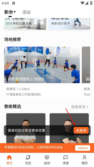 1、在咕鸽运动首页,点击去登录按钮,进入登录注册页面。