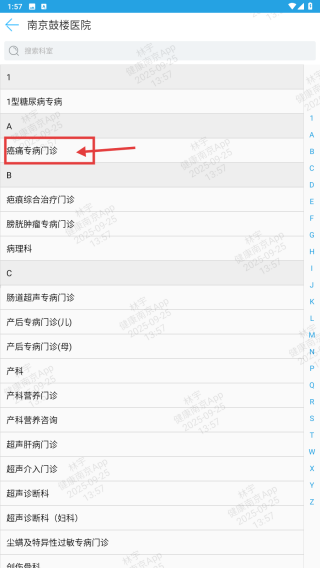 3、在科室选择界面,点击疼痛专病门诊选项,进入医生选择页。