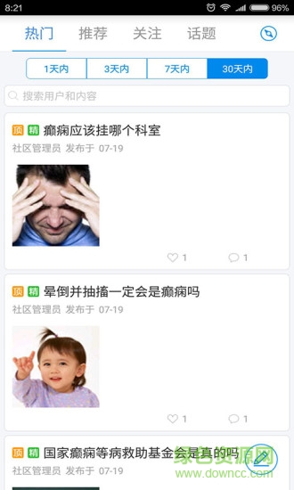 海量专业知识包括了癫痫病因、危害、护理以及治疗成功战胜病魔的案例可供参考。