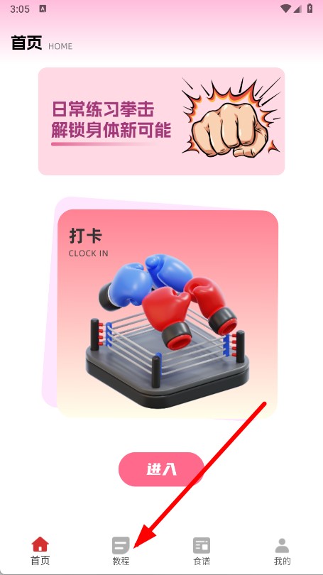 1、打开拳击计时器APP,点击底部教程选项。