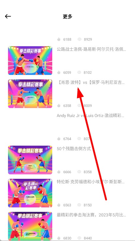 3、进入更多拳击精彩视频列表后,选择想要查看的视频并点击。