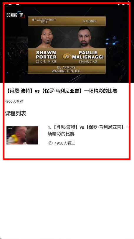 4、点击后进入该拳击精彩视频的播放页面,查看视频内容及相关课程列表。