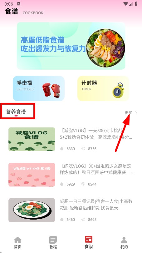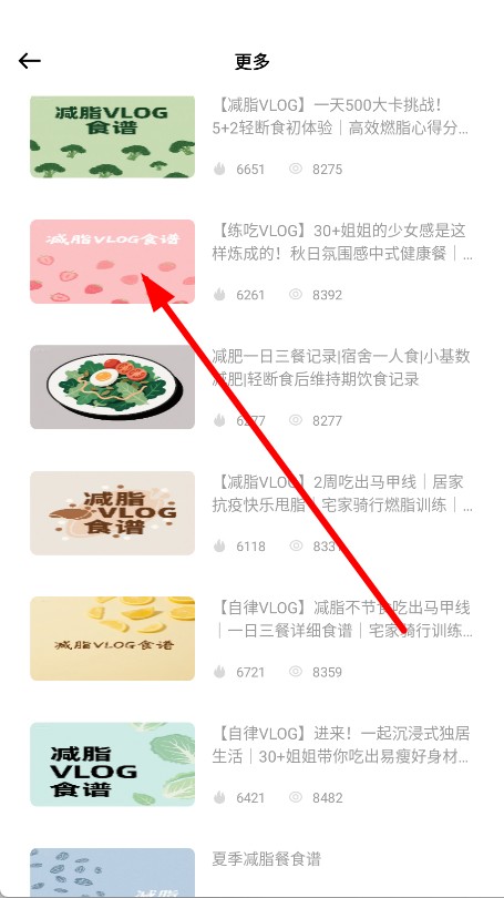 3、进入更多食谱列表后,选择想要查看的减脂食谱视频并点击。