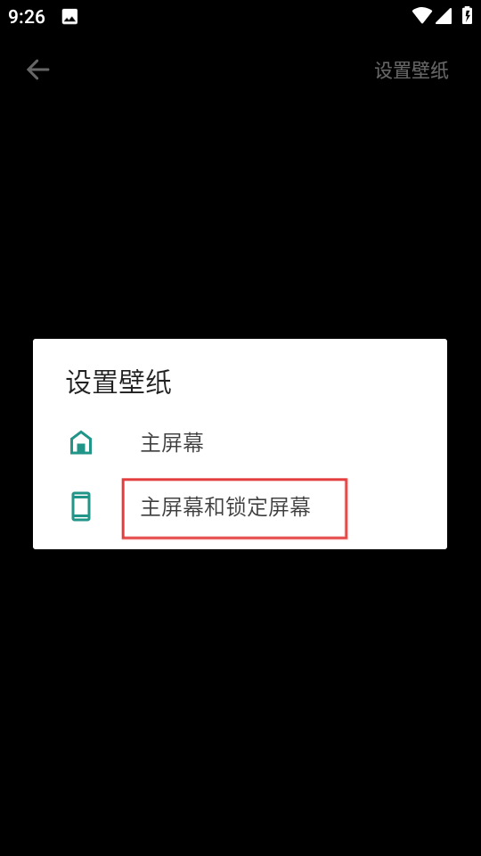 4、在弹出的设置选项中,选择主屏幕和锁定屏幕,完成壁纸设置。