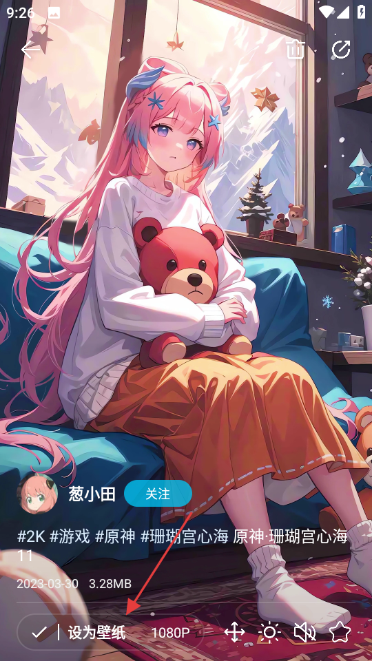 2、在图片详情页,点击设为壁纸按钮,进入设置壁纸页面。