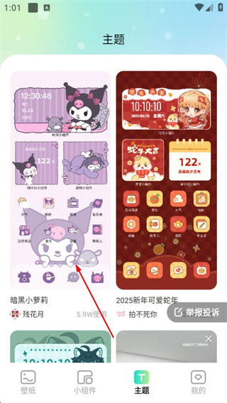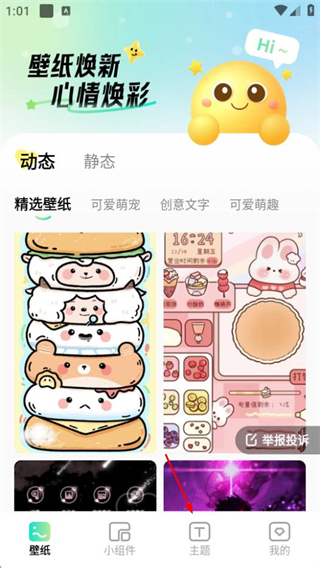 1、在焕新壁纸首页,点击底部主题选项,进入主题页面。