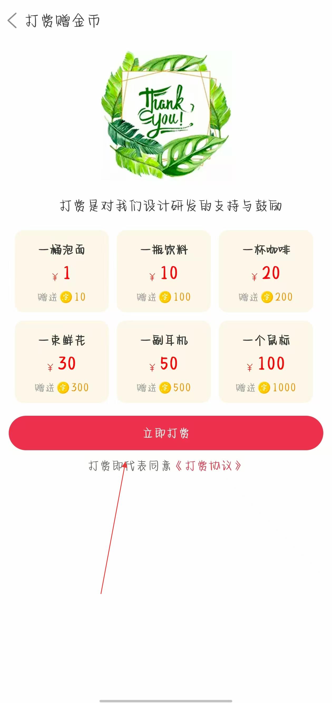3、选择心仪的金币套餐,点击立即打赏,依据页面支付提示完成付款流程,即可成功充值金币。