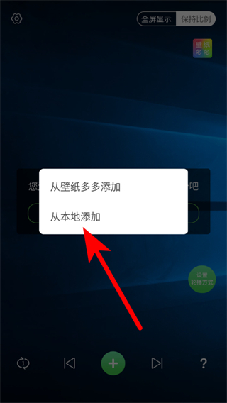 1、在视频桌面设置页面,点击下方绿色加号按钮,弹出添加选项界面。