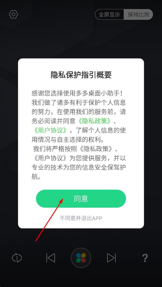 1、打开多多桌面小助手,阅读隐私保护指引概要后点击“同意”,进入主界面,若未设置视频桌面,可选择“本地挑选”或“壁纸多多挑选”。