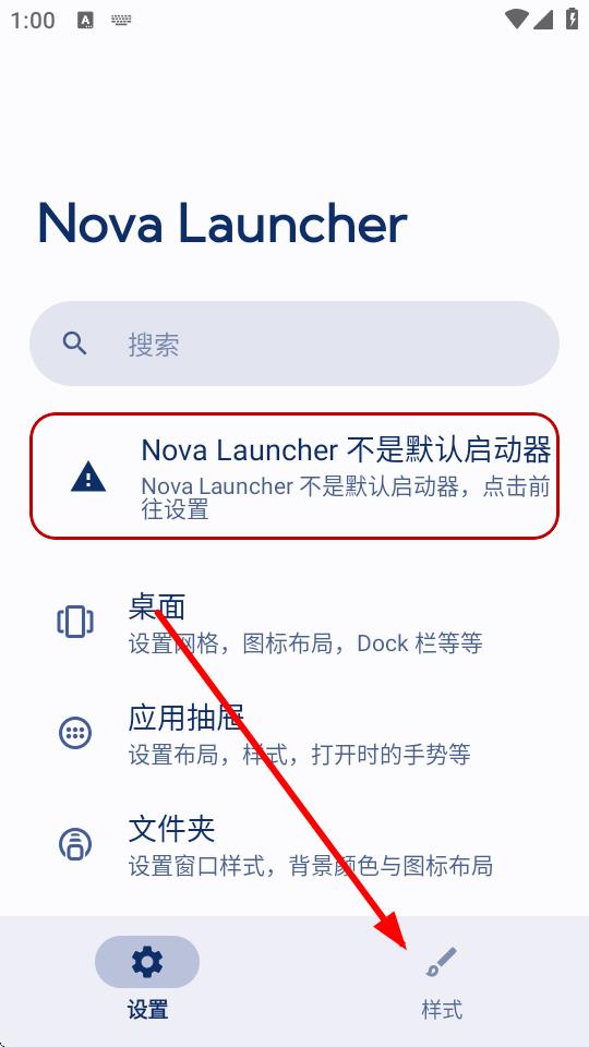 1、打开nova应用,在主界面点击下方的样式选项。
