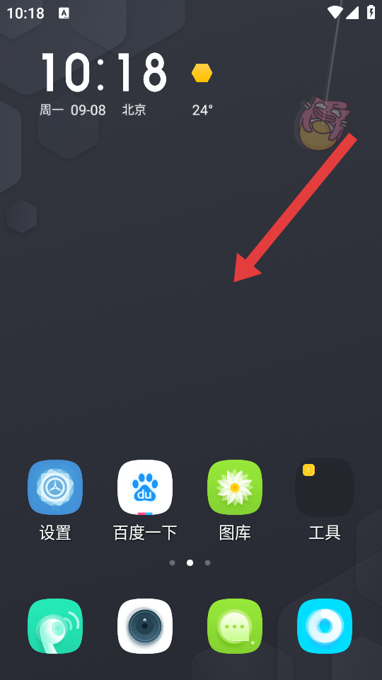 1、在手机主屏幕上,长按桌面桌面空白区域,调出桌面设置的快捷操作菜单。